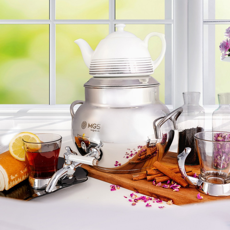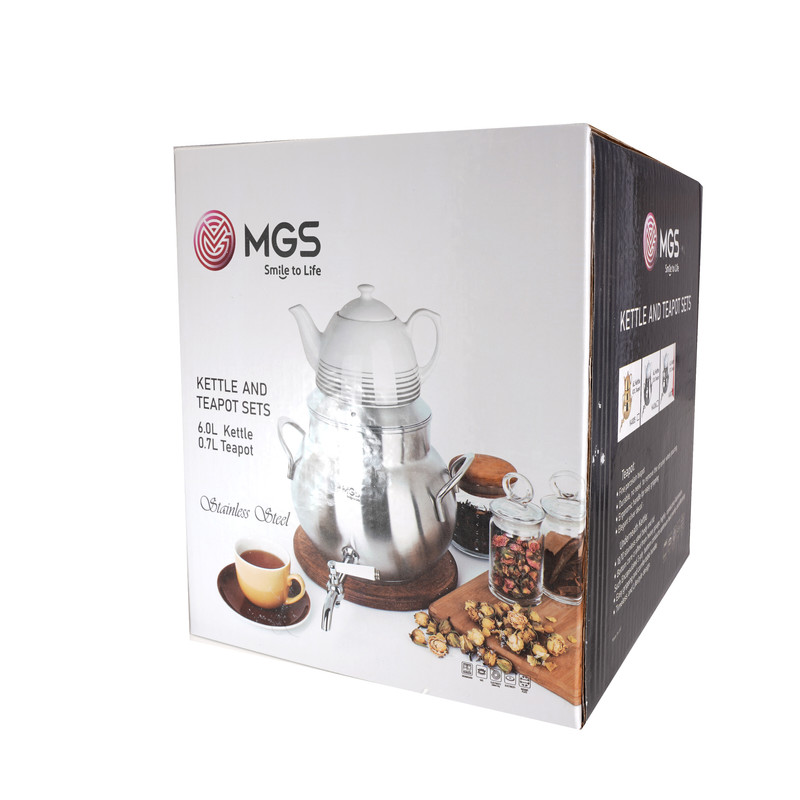 ست کتری و قوری «MGS» (ام جی اس) مدل k 4107جایگزین مناسبی برای تعویض کتری و قوری قدیمی آشپزخانهتان خواهد بود. استفاده از چینی در ساخت قوری به حفظ طعم و عطر اصلی چای و قهوه کمک بسزایی میکند. چینی علاوه بر حفظ عطروطعم نوشیدنی، در برابر گرما و حرارت غیرمستقیم پایداری بالایی دارد و گذشت زمان تاثیری خاصی بر کیفیت و ظاهر آن ندارد. . کتری ست از فلز استیل ساخته شده است تا در برابر حرارت مستقیم اجاقگاز صدمه نبیند. استیل بهکاررفته در کتری علاوه بر مقاومت مطلوب در برابر گرما و حرارت، ضدزنگ است و وجود آب داخل محفظهی آن باعث زنگزدگیاش نخواهد شد.
